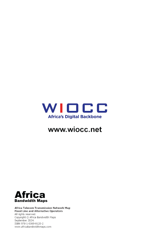 Copyright Notice: All rights reserved. Copyright © Africa Bandwidth Maps, 2024. No part of these works may be reproduced, copied or transmitted in any form or by any means, electronic, mechanical, photocopied or otherwise, without the written permission of Hamilton Research Ltd. Cartography: Paul Hamilton. Acknowledgements: Africa Analysis, African ISP Association (AfrISPA), Balancing Act, ECCAS, ECOWAS, Liquid Telecom, West Indian Ocean Cable Company (WIOCC),World Bank. Some data for North African countries adapted from World Bank 2014: Gelvanovska Natalija, Michel Rogy and Carlo Maria Rossotto. 2014. Broadband Networks in the Middle East and North Africa, Accelerating High-Speed Internet Access. Directions in Development. Washington, DC: World Bank. Doi: 10.1596/978-1-4648-0112-9. License: Creative Commons Attribution CC BY 3.0.